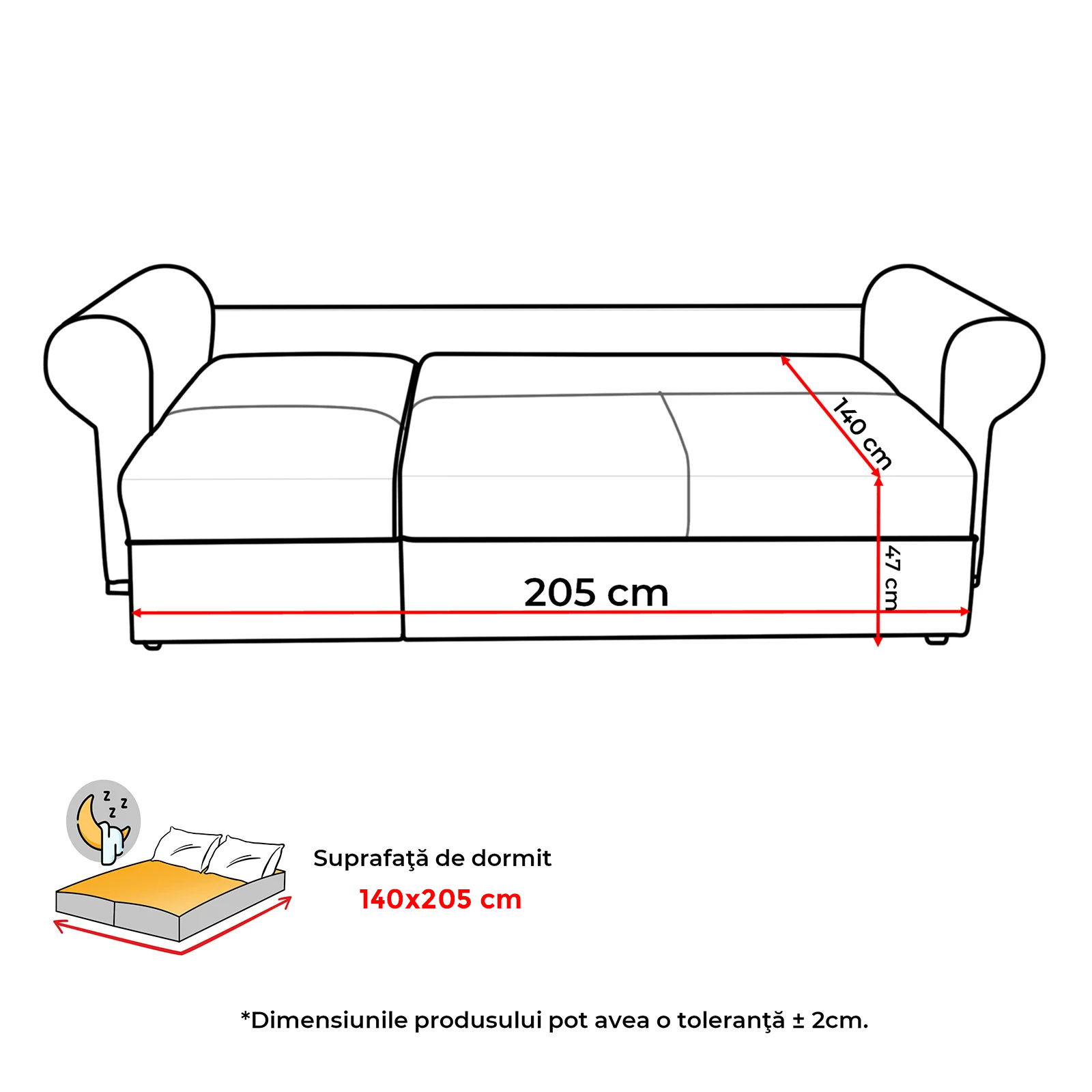 Dimensiuni suprafata de dormit: