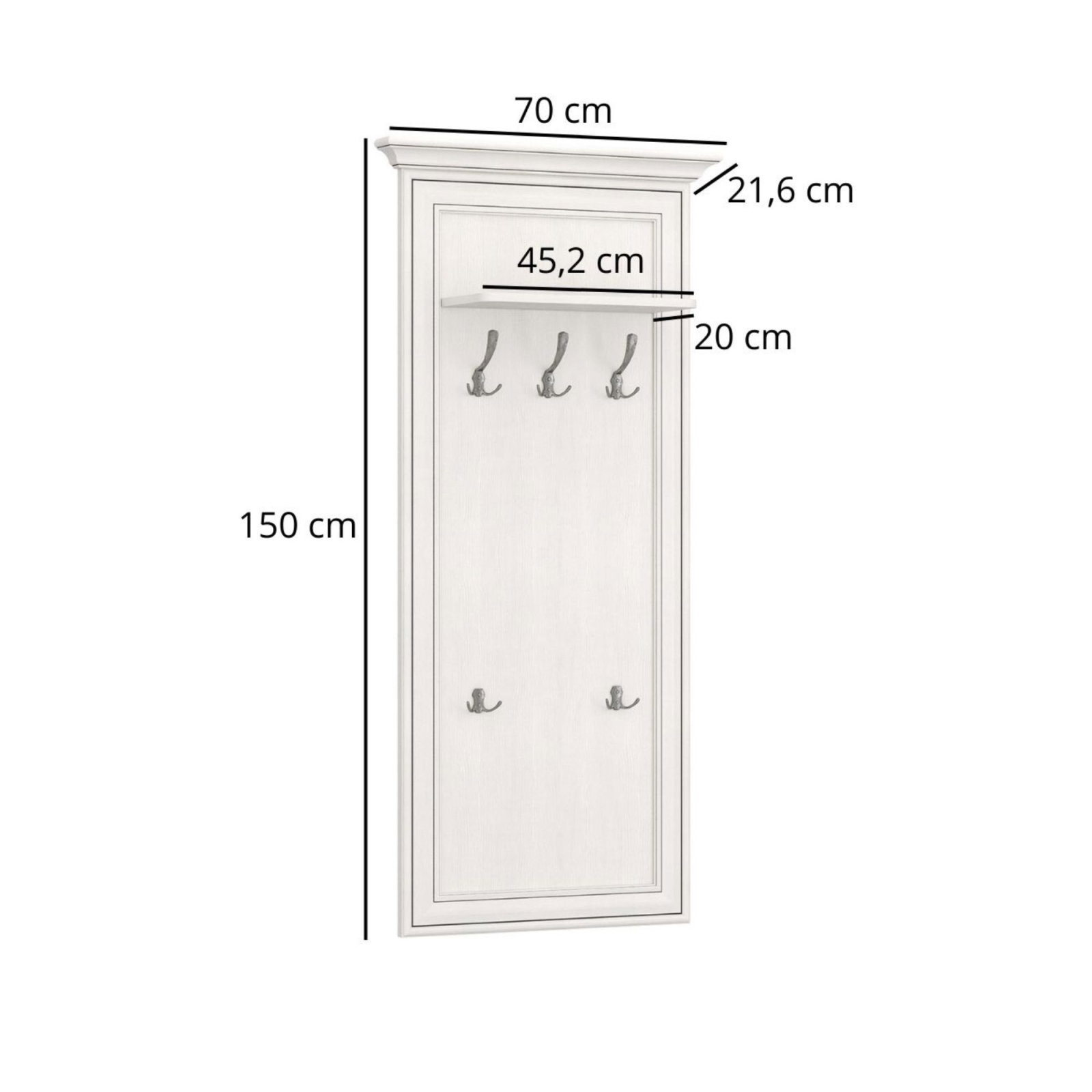 Schita de montaj Cuier suspendat TIFFANY II, crem fineline, 70x21,6x150 cm