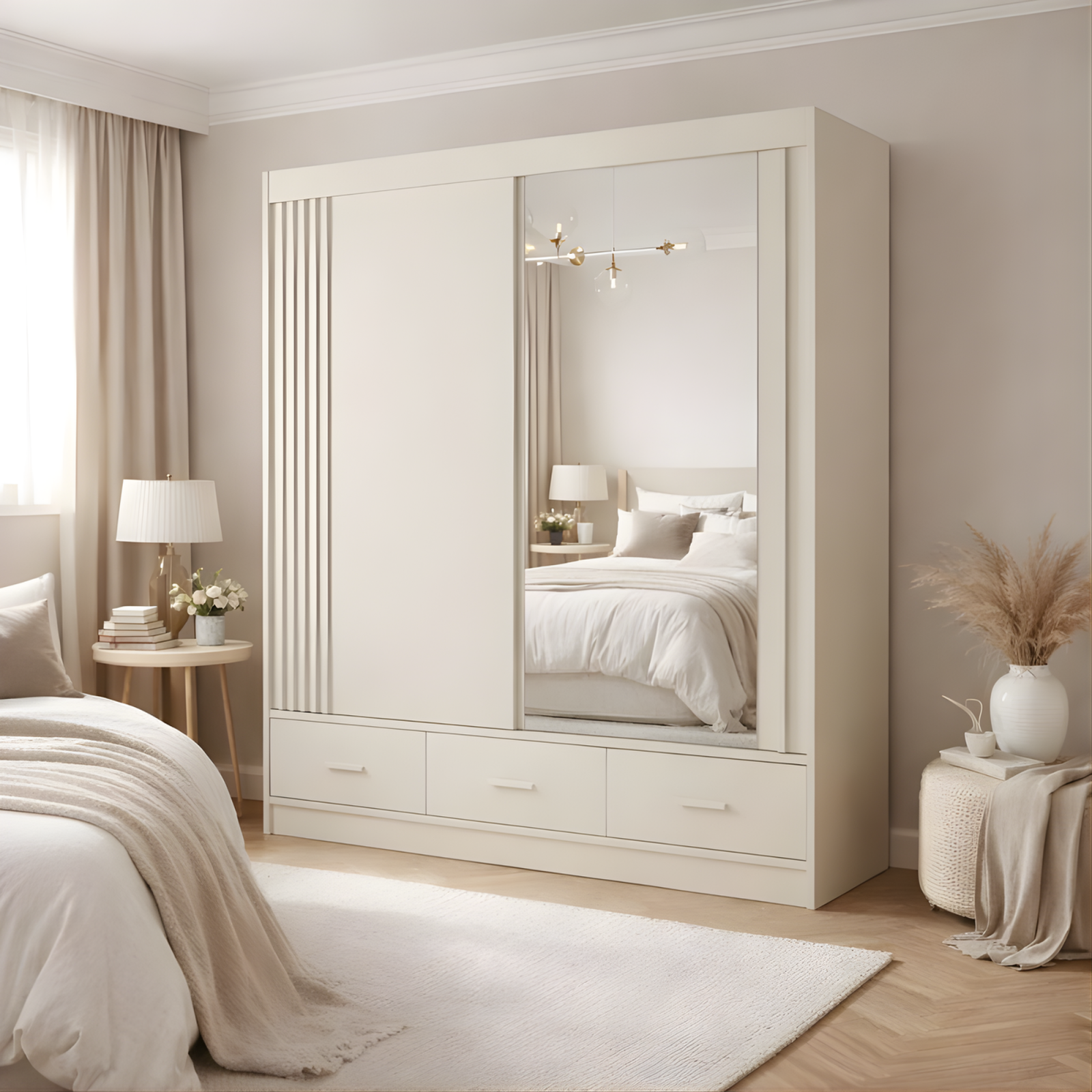 Materiale: PAL, MDF, Cant ABS, Oglinda, Sistem de glisare metalic cu reglaj