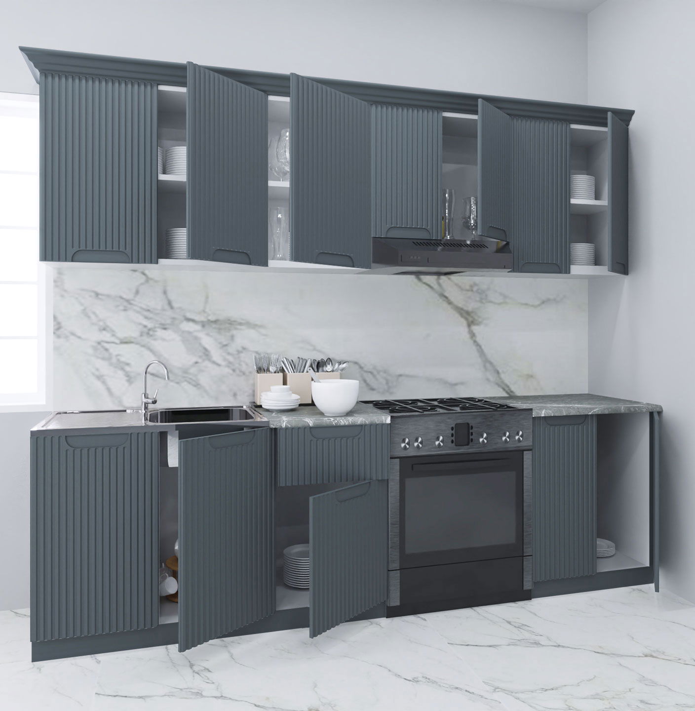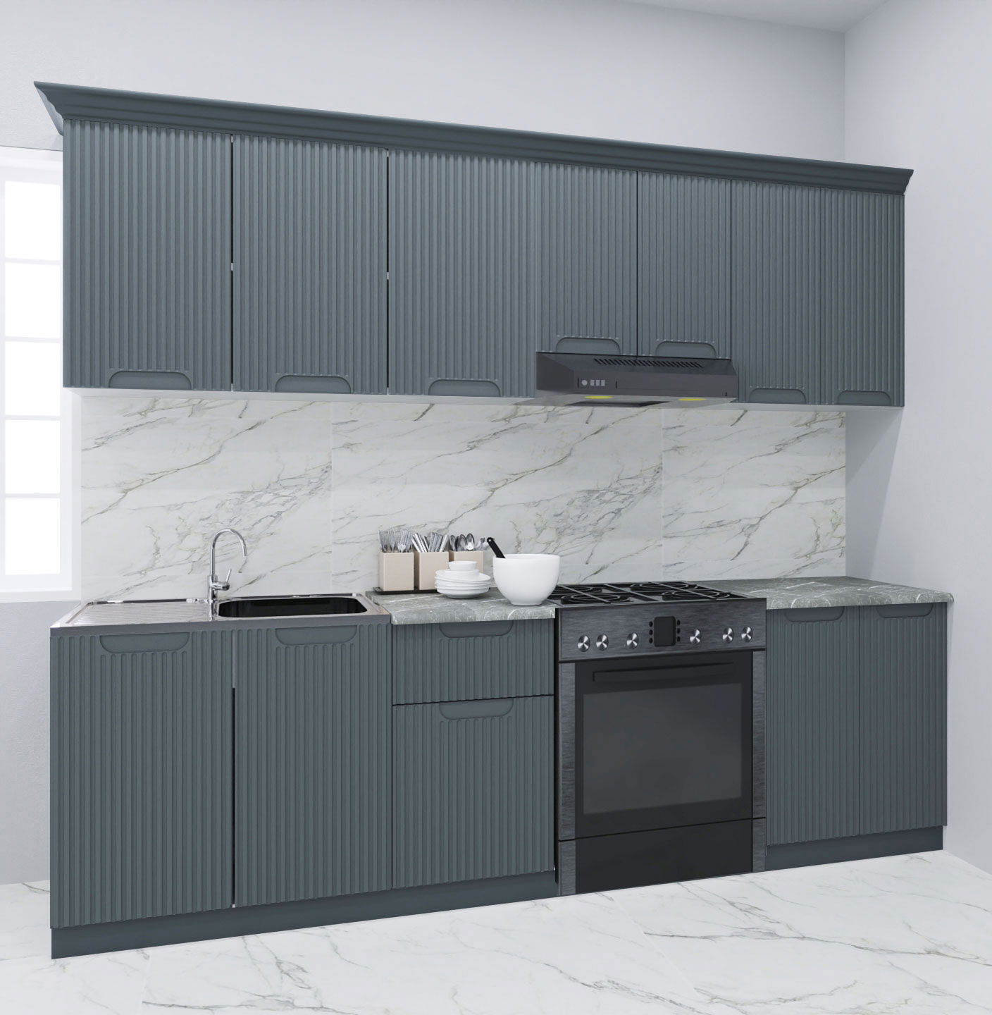 Set bucatarie SPACE 240 cm, 7 corpuri, blat termorezistent, fronturi MDF, antracit